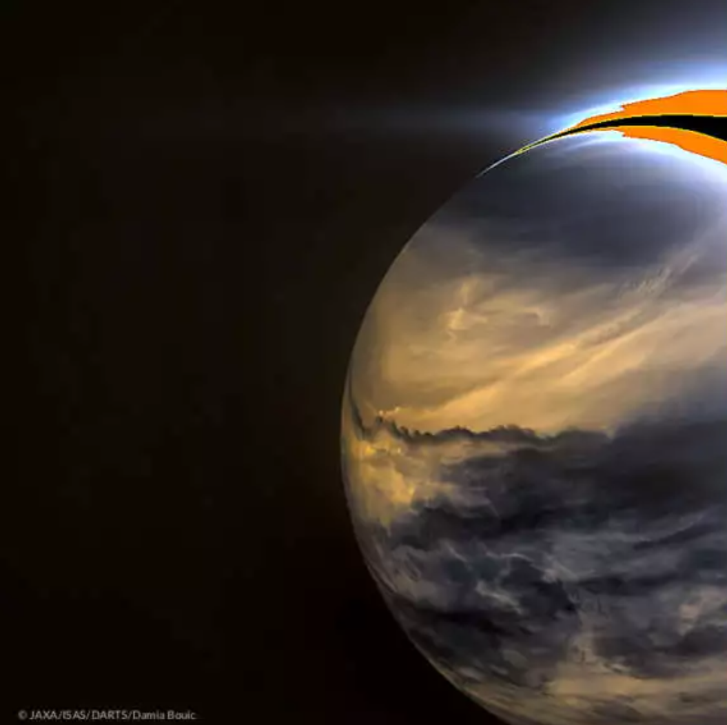 - JAXA’nın çektiği Venüs fotoğrafı, görüntü işleme uzmanı Damia Bouic tarafından düzenlenmiş.