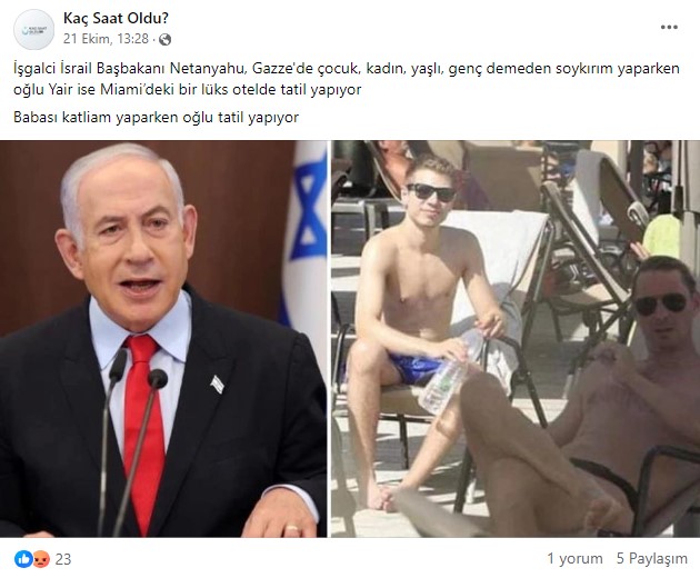 Bazı sosyal medya kullanıcıları İsrail Başbakanı Binyamin Netanyahu’nun oğlu Yair Netanyahu’nun sözde bir otelde tatil yaptığını gösteren fotoğrafı paylaştı.