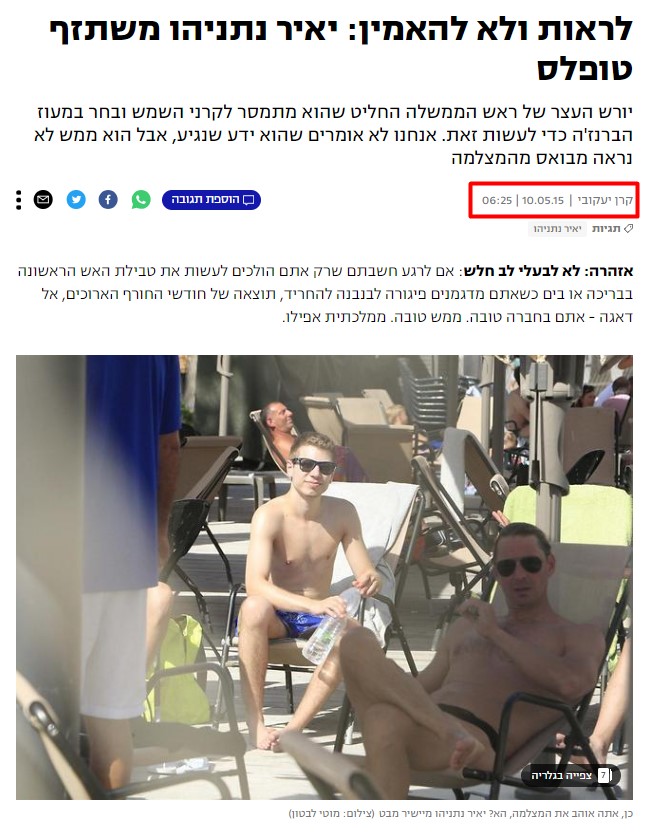 Daha sonra görüntüyü tersine görsel arama yöntemi kullanarak aradığımızda, fotoğrafın 2015’ten olduğunu görüyoruz. Pplus sitesinde yer alan habere göre Yair Netanyahu’nun yer aldığı işbu fotoğrafın, Tel Aviv’deki Gordon Pool’da kaydedildiği bilgisine yer verilmiş.