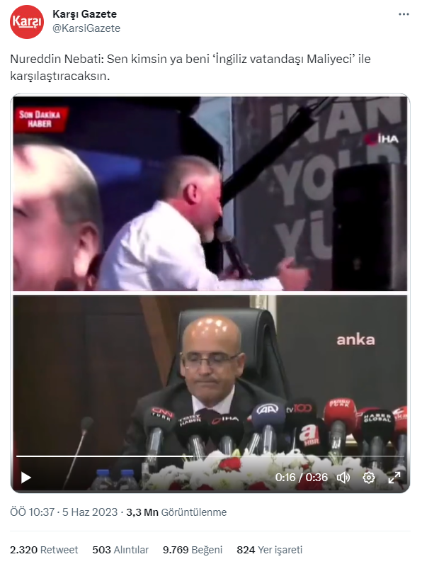 Nureddin Nebati’nin “Sen kimsin ya beni ‘İngiliz vatandaşı Maliyeci’ ile karşılaştıracaksın.” söylemini araştırdığımızda karşımıza Nebati’nin 18 Nisan 2023’te gerçekleştirdiği Tarsus mitingi çıkıyor. Mersin AK Parti 1. sıradan milletvekili adayı olarak gösterilen Nebati, seçim çalışmaları kapsamında Mersin’in Tarsus ilçesini ziyaret etmiş ve burada bir miting gerçekleştirmişti.