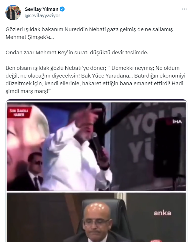 Gözleri ışıldak bakanım Nureddin Nebati gaza gelmiş de ne sallamış Mehmet Şimşek’e…