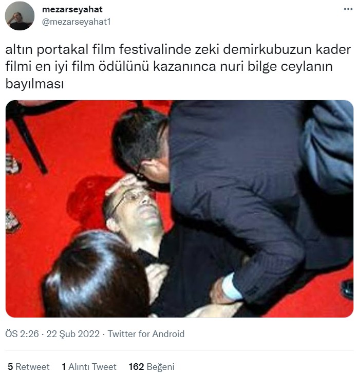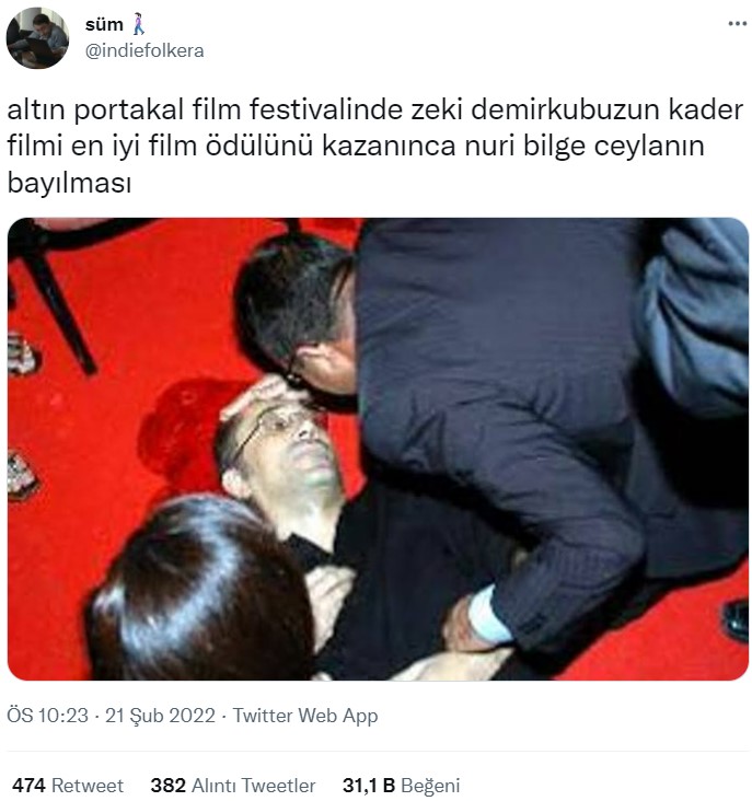 2006 yılında Antalya’da gerçekleşen 43. Altın Portakal Film Festivali’nde, ünlü yönetmen Zeki Demirkubuz‘un en iyi film ödülü ‘Kader’ filmine verilmiş. İddia sahiplerine göre, Nuri Bilge Ceylan, Zeki Demirkubuz’un en iyi film ödülünü kazandığını gördükten sonra fenalaşarak bayılmış. Yönetmen Ceylan’ın sinirden fenalaştığını söyleyenler de var.
