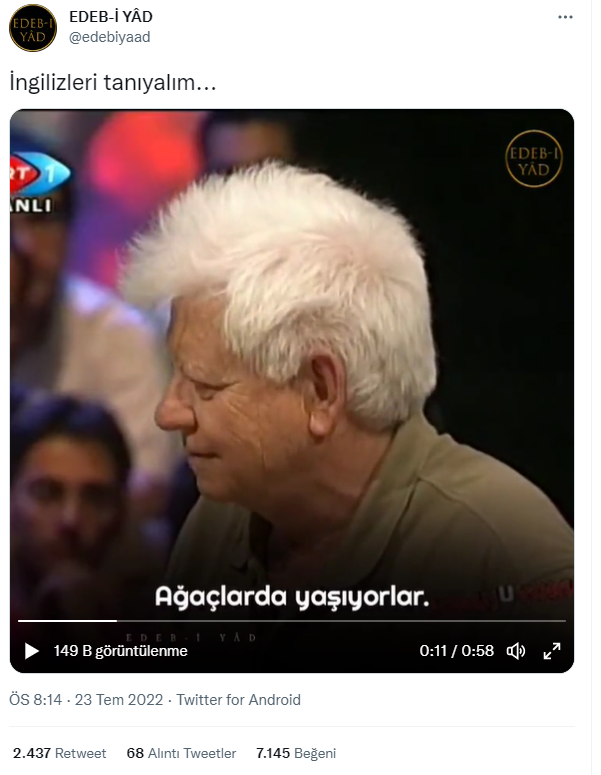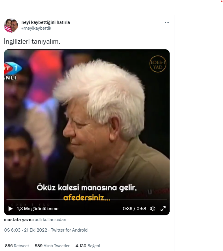 Oktay Sinanoğlu’nun konuşmasında yerli Norman keşişin hatıratından bahsediyor. 1066 yılında Normanların İngiltere’yi işgal ettiği zaman orada bulunan yerli İngilizlerin ağaçlarda yaşadığını iddia ediyor.