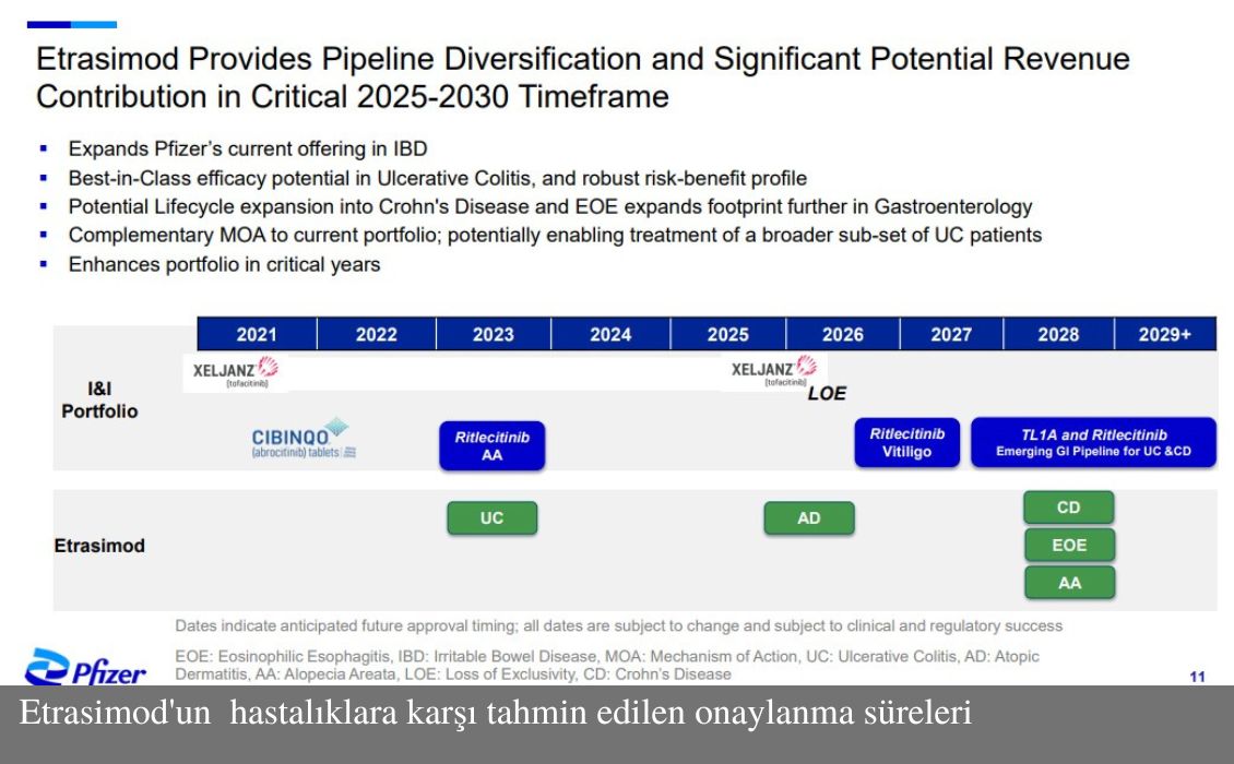 İddiaya yer ilaç 29 Mart 2022’de bazı sonuçları yayınlanan Etrasimod’tır. 29 Mart 2022 tarihinde bu ilacın 3. Faz deneylerinde bazı olumlu sonuçlar alındığına dair bir duyuru yayınlandı. Fakat ilaç “ulcerative colitis” denen bir hastalığa karşı geliştiriliyor. İlaç alopecia areata’nın da bir üyesi olduğu immüno-inflamatuar hastalıklarına karşı da deneniyor. Etrasimod’un alopecia areataya karşı etkisinin araştırıldığı 2.faz deneyleri ise hala devam ediyor ve 2023’ün Ekim ayında 2. Faz çalışmalarının tamamlanması bekleniyor. Bu hastalığa karşı onaylanıp sunulması ise 2028’e kadar süreceği planlanıyor.