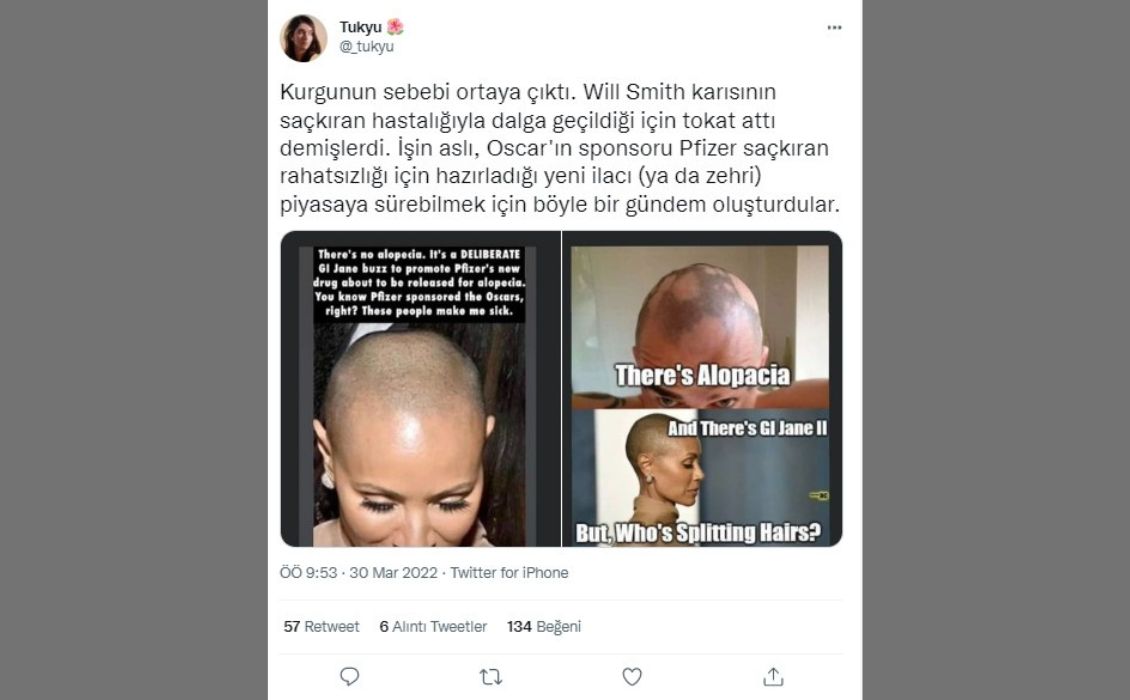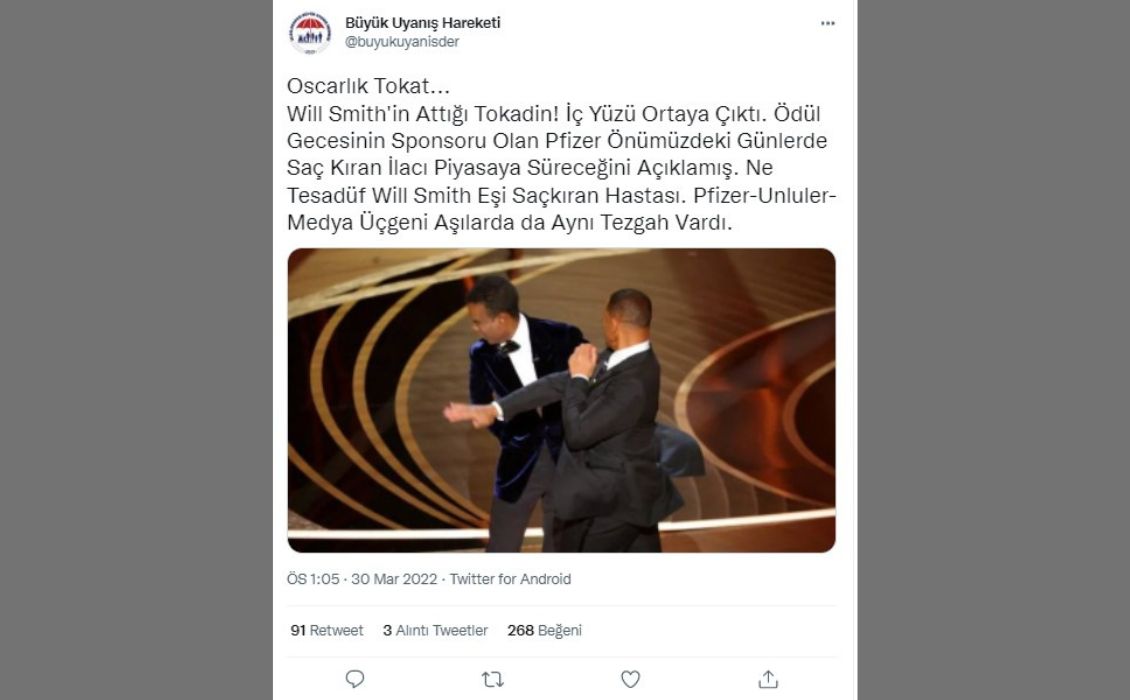 Oscar töreninde gerçekleşen tokat olayının Pfizer tarafından kurgulandığı iddiası
