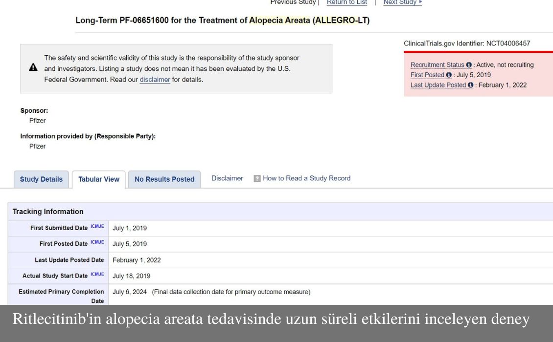 Pfizer’in geliştirdiği ve alopecia areataya karşı denenen diğer bir ilaç olan ritlecitinib için ise faz 3 çalışmaları 2024 yılının Temmuz ayında tamamlanması bekleniyor. İlacın 2023’te piyasa sürülebileceği düşünülüyor.