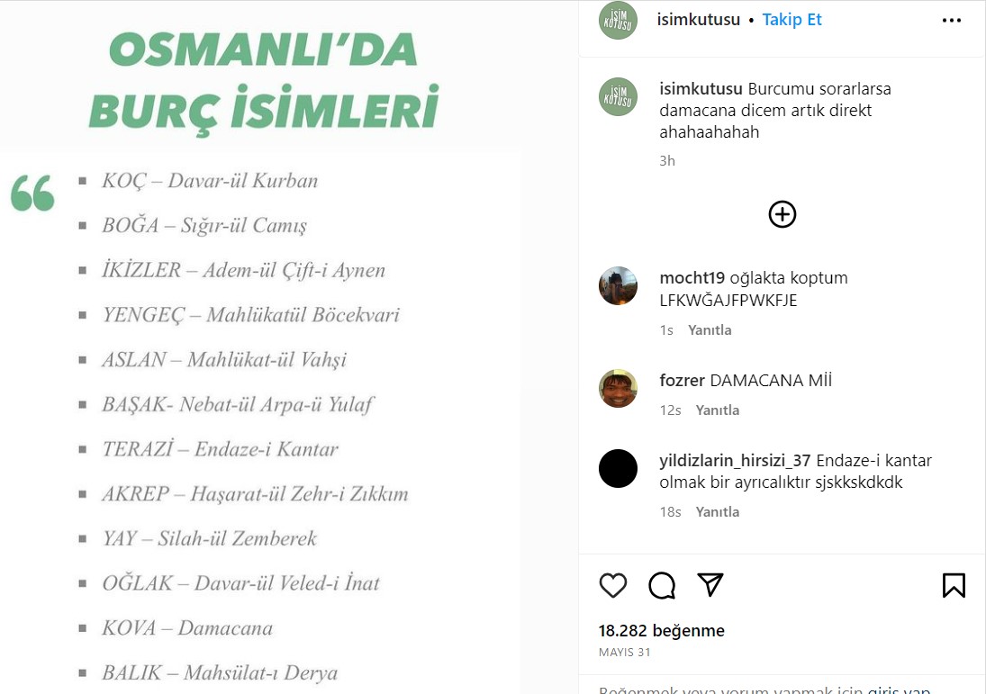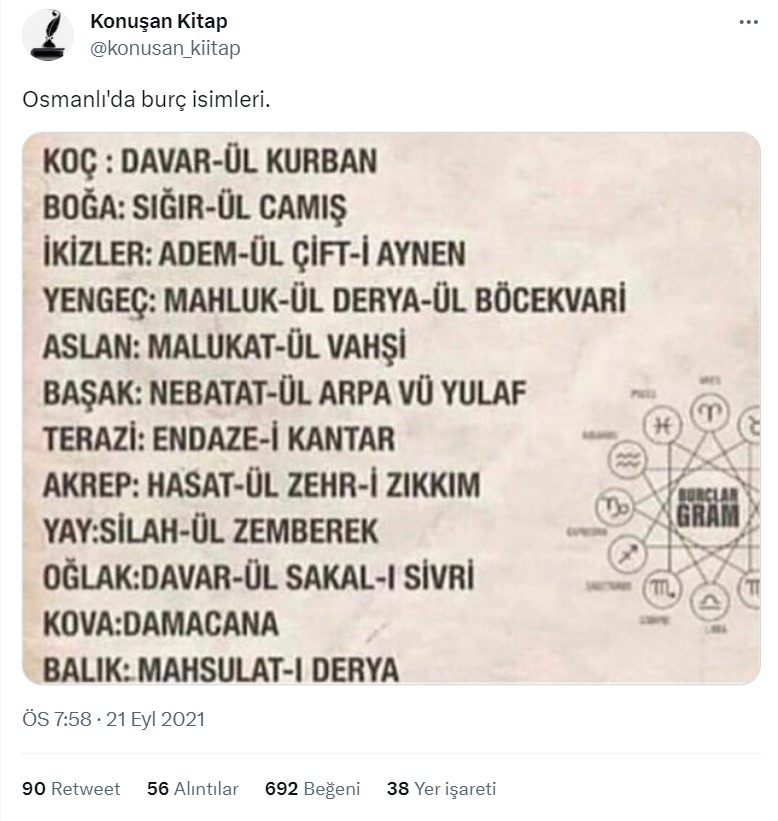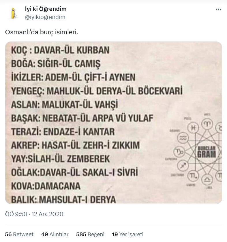 Burçların Osmanlı dönemindeki karşılıklarını gösterdiği iddiasıyla paylaşılan liste uzun zamandır sosyal medyada dolaşımda. Binlerce beğeni alan listenin doğruluğunu inceledik.