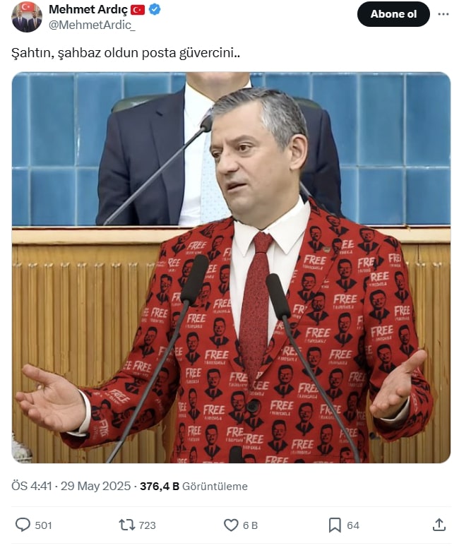 - Özgür Özel’in “Free İmamoğlu” baskılı ceket giydiği görsel gerçek değil. Bilgisayar düzenlemesi ile oluşturulmuş.
