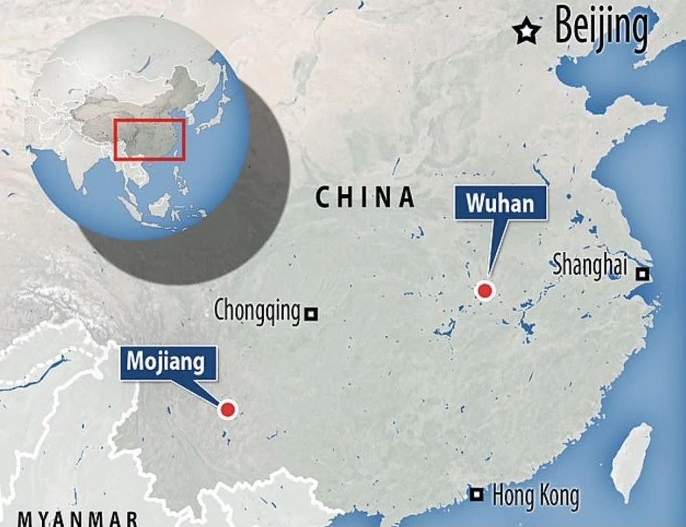 -2020 yılı itibariyle koronavirüsün dünyaya ilk yayıldığı yer olarak bilinen Wuhan ile 2012 yılında maden işçilerinin koronavirüse yakalandıkları yer olduğu iddia edilen Mojiang Madeni arasında 1600 km mesafe var. Fakat yine de 2012 yılında madencilerden alınarak laboratuvarda saklanan örneklerin salgına sebep olduğu iddiası üzerine 2020 yılında yapılan incelemelerde maden ve çevresinde SARS-CoV-2 virüsüne kesin olarak rastlanılmadı.