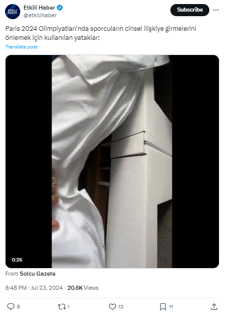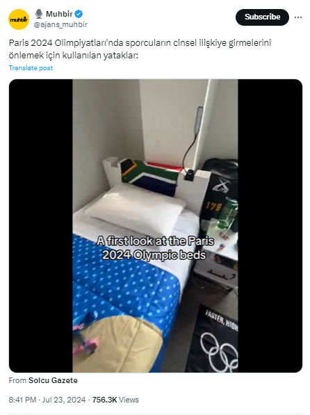 Paris 2024 Yaz Olimpiyatları’nda kullanılan karton yatakların sporcuların cinsel ilişkiye girmelerini önlemek için üretildiği iddiası