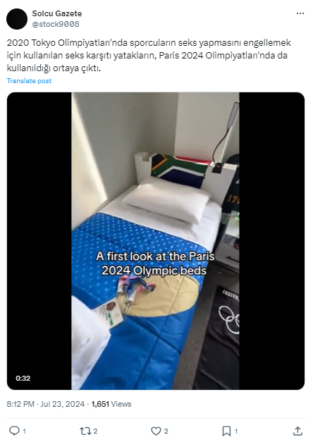 Benzer iddialar Tokyo 2020 Olimpiyatları esnasında da ortaya atılmış. Yataklar geri dönüştürülebilir özelliğiyle tanıtılmasına rağmen ‘aslında cinselliği önlemek’ amacı taşıdığı teorileri üretilmiş.