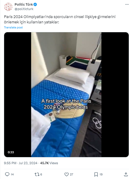 Bunun üzerine Kuzey İrlandalı jimnastikçi Rhys McClenaghen, yataklar hakkındaki gerçeği kaydettiği videoyla ortaya çıkardı. McClenaghen’ın yatağın üstünde zıplayarak kaydettiği videoda yatakların bozulmadan sabit kaldığı açıkça görülüyor. Ardından olimpiyatların resmi X hesabından bu paylaşıma şöyle yanıt gelmiş: