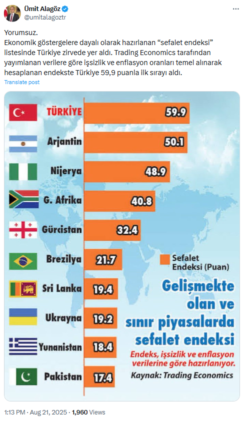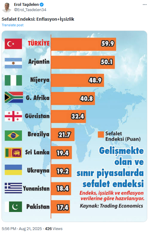 Paylaşılan görsel Türkiye’nin Sefalet Endeksi’ndeki sıralamasını mı gösteriyor?