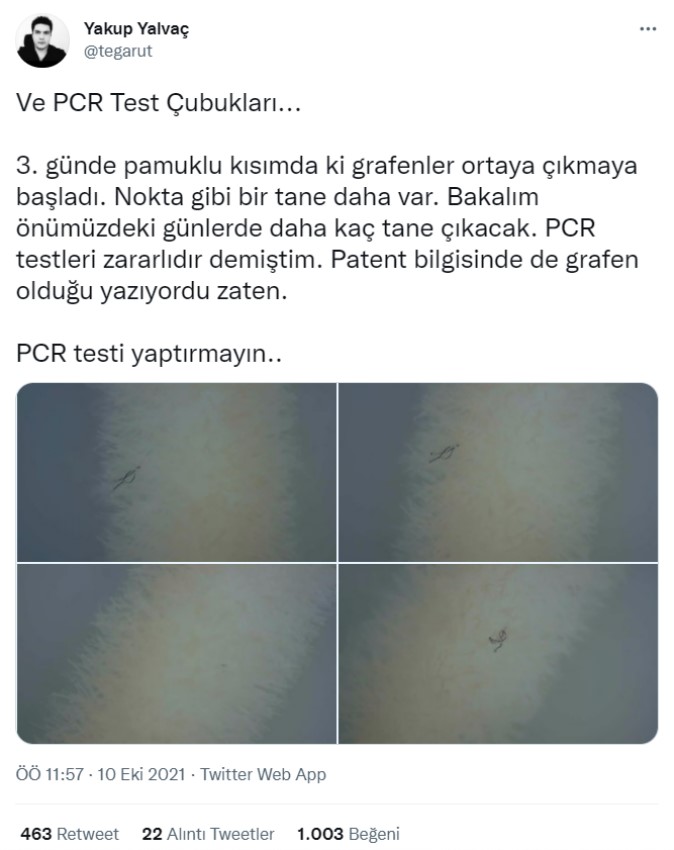 Dünyada, Covid-19 pandemisi etkisini sürdürürken yapılan test ve aşı uygulamaları sosyal medyanın gündeminde yer almaya devam ediyor. Covid aşılarının içeriğinde grafen olduğu iddia edilmiş ve birçok doğruluk kontrolü platformu tarafından bu iddia incelenmişti. Konuya ilişkin içeriğimize buradan göz atabilirsiniz. Aynı şekilde sosyal medyada PCR test çubuklarının da grafen içerdiği iddia edildi. “Yakup Yalvaç” isimli Twitter kullanıcısının konuya ilişkin iddialarının ardından Yeni Akit tarafından bu iddialar haberleştirildi.