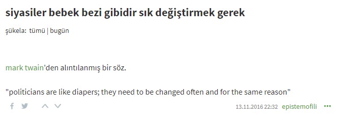 “Politikacılar ve bebek bezleri aynı nedenden ötürü sık sık değiştirilmeli” sözü Twain’e ait değil