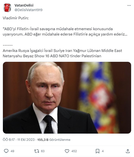 Putin’in ABD’yi Filistin-İsrail savaşına dahil olma konusunda uyardığı iddiası