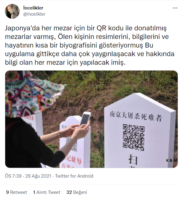 Cep telefonuyla mezar taşının üzerindeki QR kodu taradığı görülen bir kadının görüntüsü, “Japonya’da ölümden sonra teknoloji” başlığı ile sosyal medyada paylaşılıyor. Yerli ve yabancı birçok sosyal medya kullanıcısının gündeme taşıdığı bu iddia kaynağı görsel, yoğun ilgi görüyor. Kullanıcılar arasında görselin gerçekliğine dair şüphe duyanlar, paylaşımı eleştirenler, QR kod ile bir ölünün geçmiş bilgilerine ulaşmayı etik bulmayarak itiraz edenler var. Gerçekten Japonya’daki bir mezarlıkta QR kod uygulaması var mı? Detaylarıyla araştırdık.