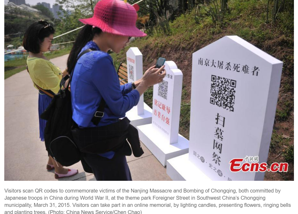 Japonya’da QR kodlu mezar taşlarına ait olduğu iddia edilen fotoğraf aslında Çin’in Chongqing kentindeki bir tema parkta yer alan Nanjing katliamı mağdurları anısına yapılan anıta ait.