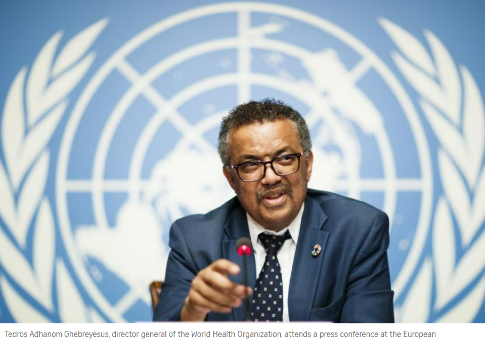 Bill Gates’in fotoğrafı aynı etkinlikte çekildi, ancak bir yıl önce, 2017’de. Tedros Adhanom Ghebreyesus’un fotoğrafı da 2018’de Dünya Sağlık Örgütü’nün Ebola salgınıyla ilgili düzenlediği basın toplantısında çekildi .