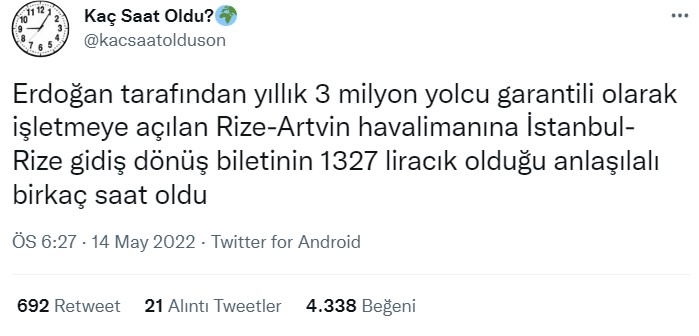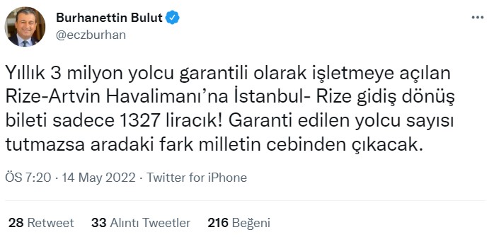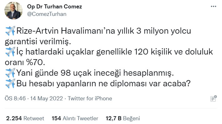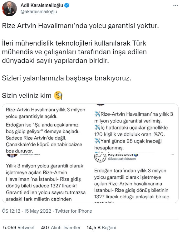Söz konusu paylaşımlarla ilgili Ulaştırma ve Altyapı Bakanı Adil Karaismailoğlu resmi Twitter hesabından Rize-Artvin Havalimanı’nın “3 milyon yolcu garantisiyle” açıldığı iddialarına karşılık açıklamalarda bulundu;