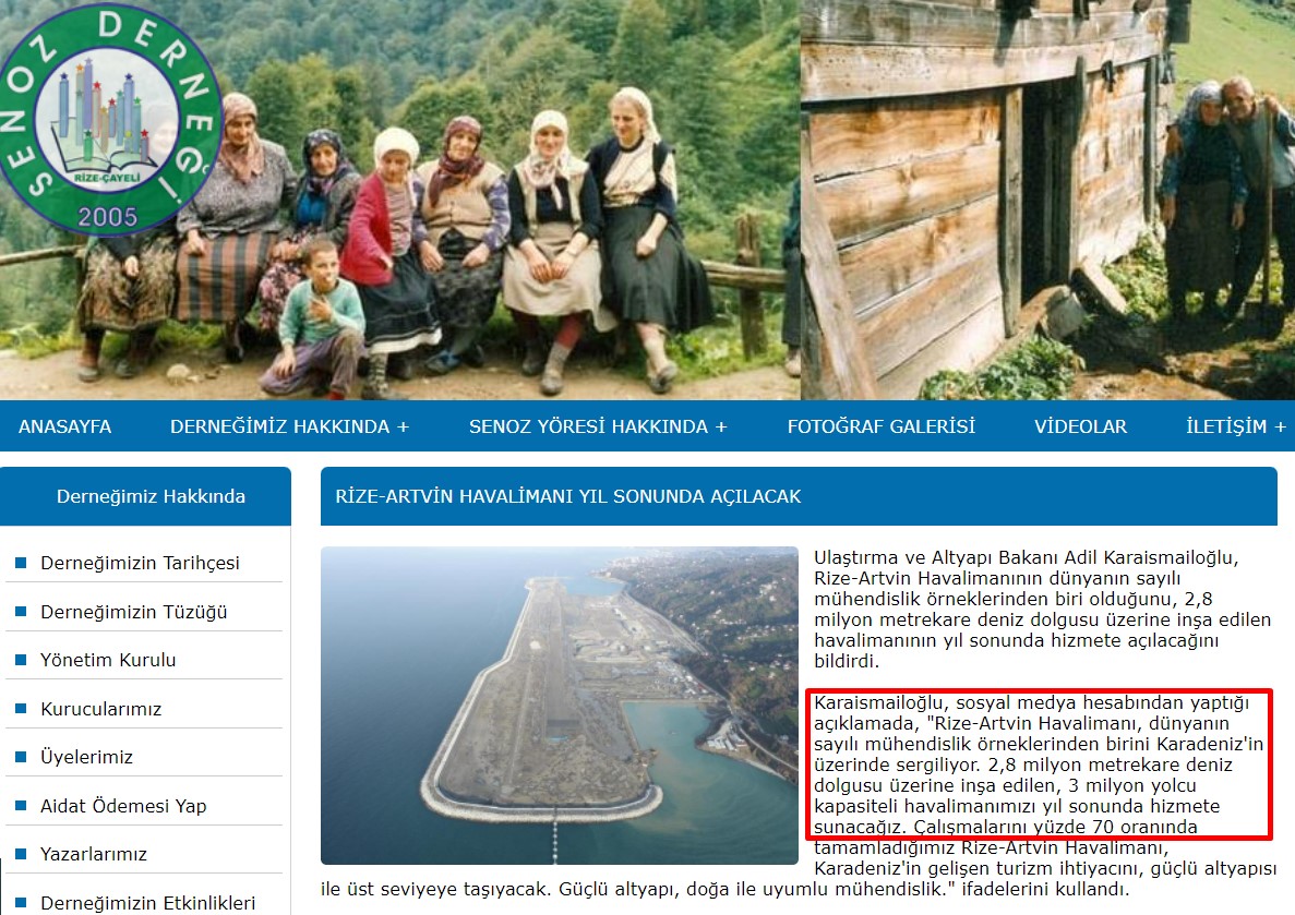 Türkiye’nin ikinci deniz üzerine dolgu yapılarak inşa edilen, Rize-Artvin Havalimanı 14 Mayıs 2022 tarihinde, Cumhurbaşkanı Recep Tayyip Erdoğan tarafından Azerbaycan Cumhurbaşkanı İlham Aliyev’in de katılımıyla hizmete açılmıştı.