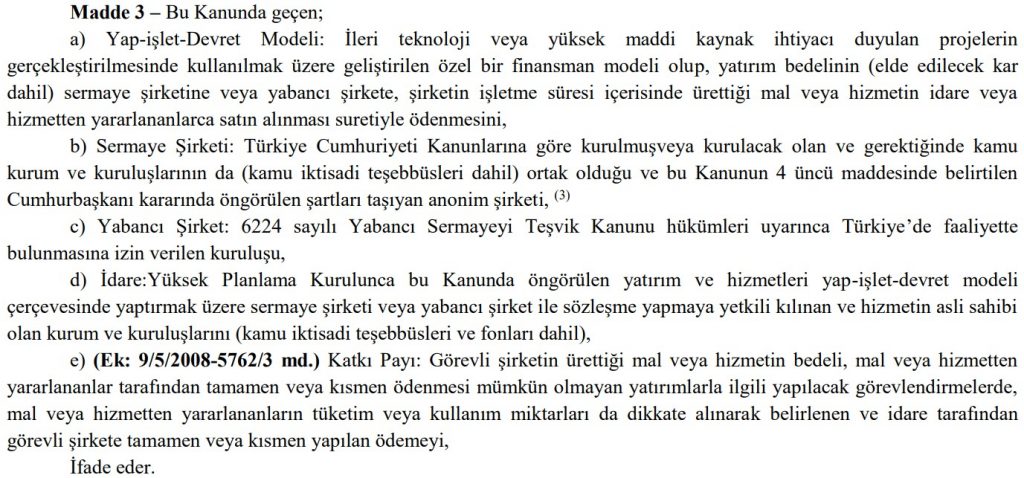 Yap-İşlet-Devret Modeli Hakkında Kanun: