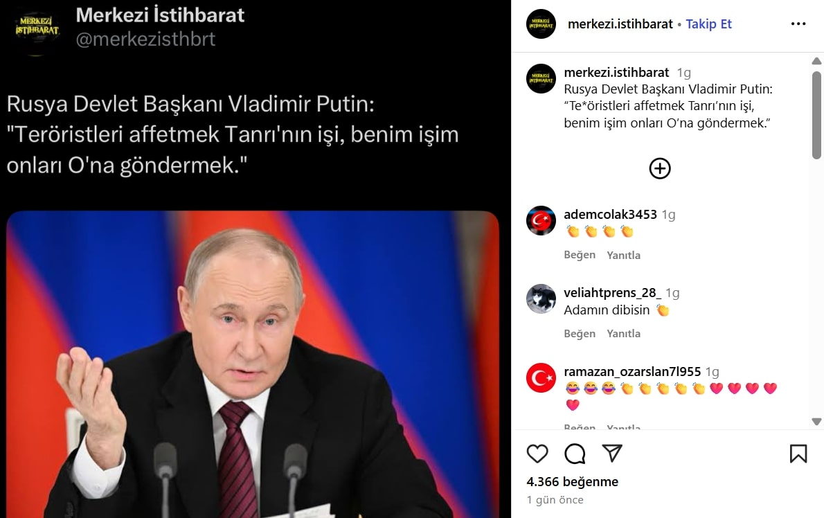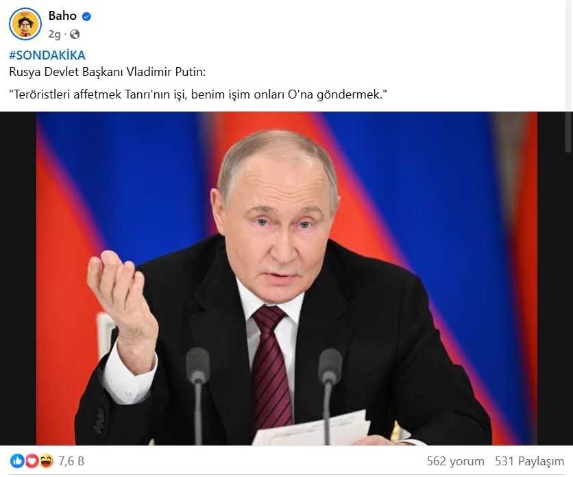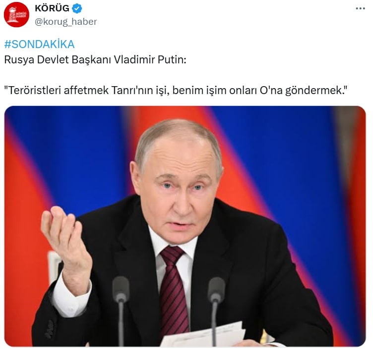 Rusya Devlet Başkanı Vladimir Putin, son birkaç gündür “Teröristleri affetmek Tanrı’nın işi, benim işim onları O’na göndermek.” sözüyle ilişkilendiriliyor. Söz, sert bir lider profiliyle bağdaştırıldığı için çokça ilgi görüyor.