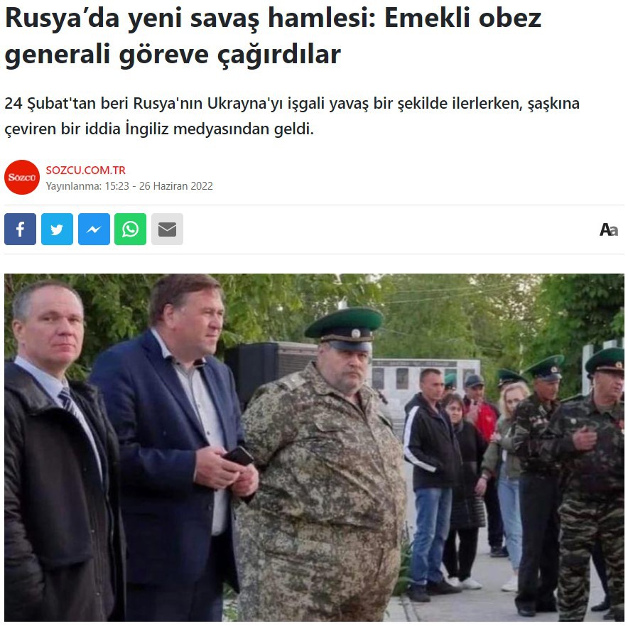 “Rusya’da yeni savaş hamlesi: Emekli obez generali göreve çağırdılar” Açıklamasıyla paylaşılan bu iddia haberi, ilk olarak The Daily Star tarafından paylaşıldı. Daha sonra başta sosyal medya platformları olmak üzere, birçok intereaktif sözlük ve haber sitesinde yer aldı.