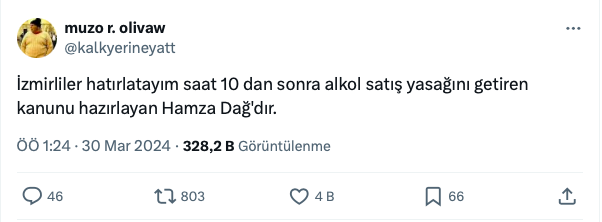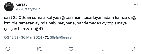Seçime az bir süre kala, X’te Hamza Dağ’ın ‘22.00’den sonra alkol satış yasağı düzenlemesini’ hazırlayan kişi olduğu iddia edildi.