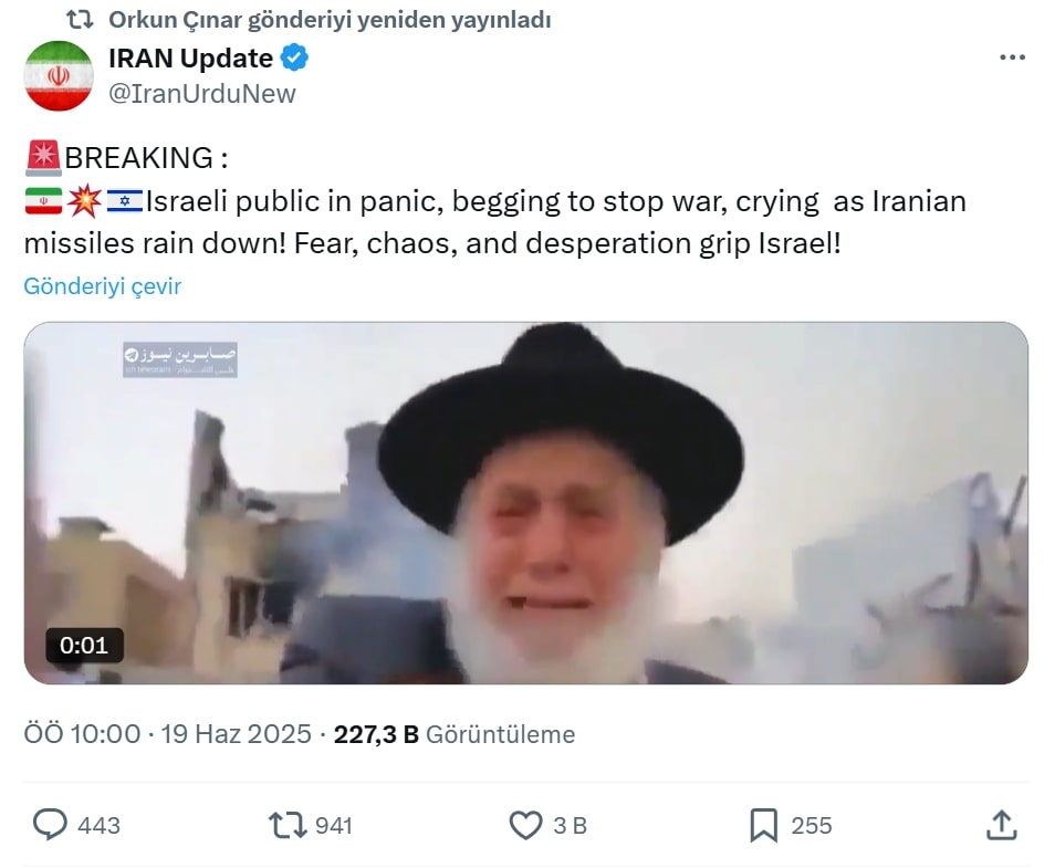 Bugün incelediğimiz iddiaya göre, yaşlı bir İsrailli İran’a saldırılarını durdurması için yalvarıyor. Peki bu video gerçek mi?
