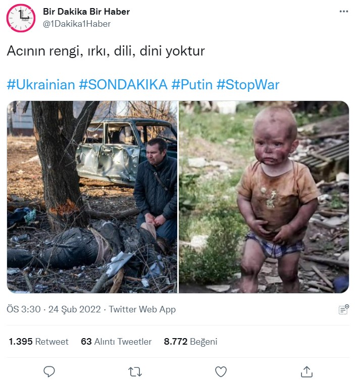 Rusya – Ukrayna arasında 24 Şubat’ta başlayan çatışmalarla birlikte sosyal medya üzerinden birçok yanlış bilgi yayılmaya başladı. Çoğu zaman kullanıcılar arasında yayılan fotoğraf ve videoların aslında yaşanan olaylarla bir bağlantısı olmadığını görüyoruz.