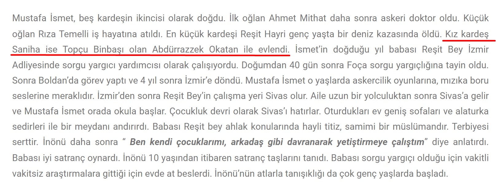 - İsmet İnönü’nün kız kardeşi Seniha Temelli, Abdürrezzak Okatan ile evlendikten sonra eşinin soyadını almıştır. Yani kendi nesli, “Temelli” soyadı üzerinden değil “Okatan” üzerinden devam etmiştir.