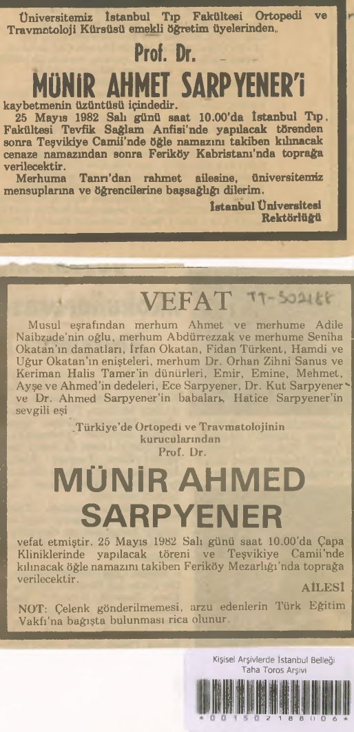 1964’teki vefatına dek bu soyadını taşıyan Seniha Hanım’ın ailesi “Okatan” soyadı üzerinden ilerlemiş. Çocuklarının isimleri; İrfan Okatan, Hüsamettin Okatan ve Hatice Sarpyener.