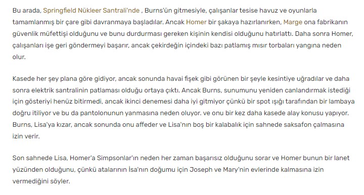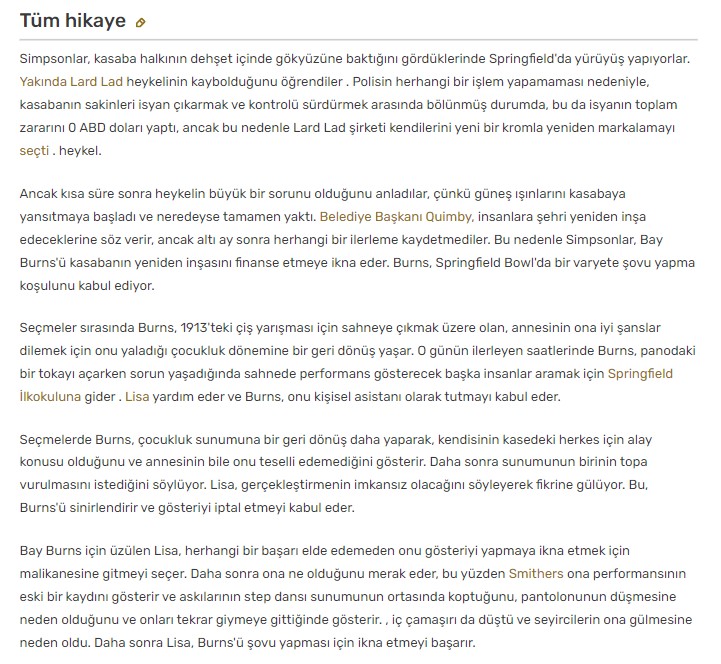 Bölüme dair araştırma yaptığımızda, Simpsons Wiki sayfasında bölümün içeriğine değinildiğini görüyoruz. Hawaii’de çıkan yangınlarla ilişkilendirilen Simpsonlar bölümü, Simpsonların Springfield’da dolaşırken, kasaba halkının korkuyla gökyüzüne baktığını görmesiyle başlıyor. Daha sonra Lard Lad heykelinin ortadan kaybolduğu konuşuluyor. Bu sırada kasabada yaşayanlar isyan çıkarmak ve isyan etmemek arasında bölünüyorlar. Bölümde, Lard Lad şirketinin yeni bir heykel dikmeye karar verdiğine değiniliyor. Fakat heykelden güneş ışınlarının kasabaya yansımasıyla her taraf yanmaya başlıyor. Bölümün ilerleyen kısmında Belediye Başkanı, halka şehri yeniden inşa etmeye dair söz veriyor ancak altı ay sonra ilerleme olmaması gerekçesiyle Simpsonlar, kasabanın yeniden inşasının finanse edilmesi için Homer’ın patronu Bay Burns’e gidiyorlar. Dolayısıyla bu bölümün güncel olaylarla bir ilgisinin bulunmadığını söyleyebiliyoruz.