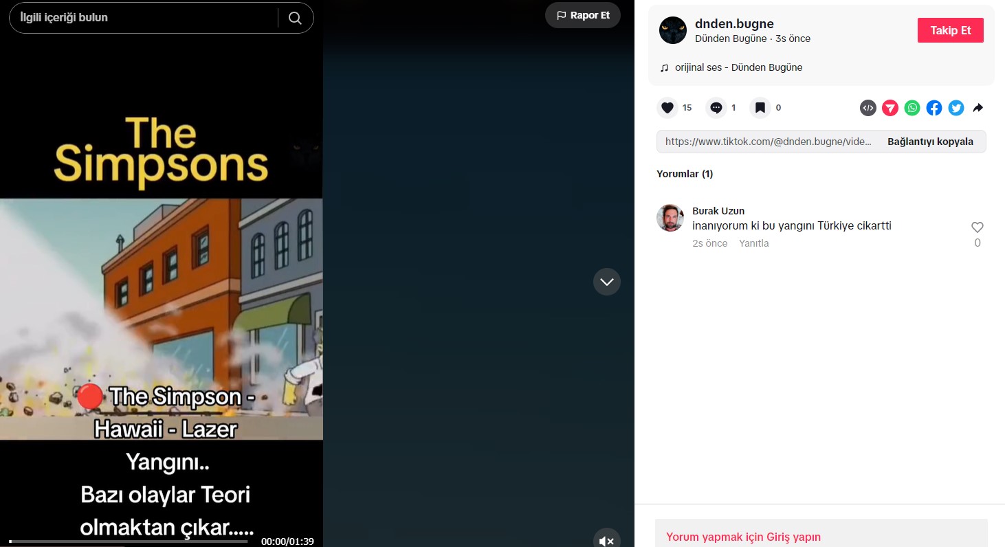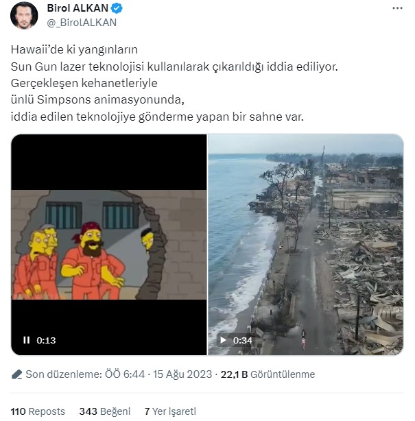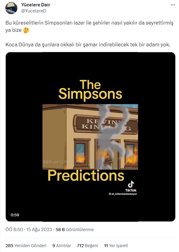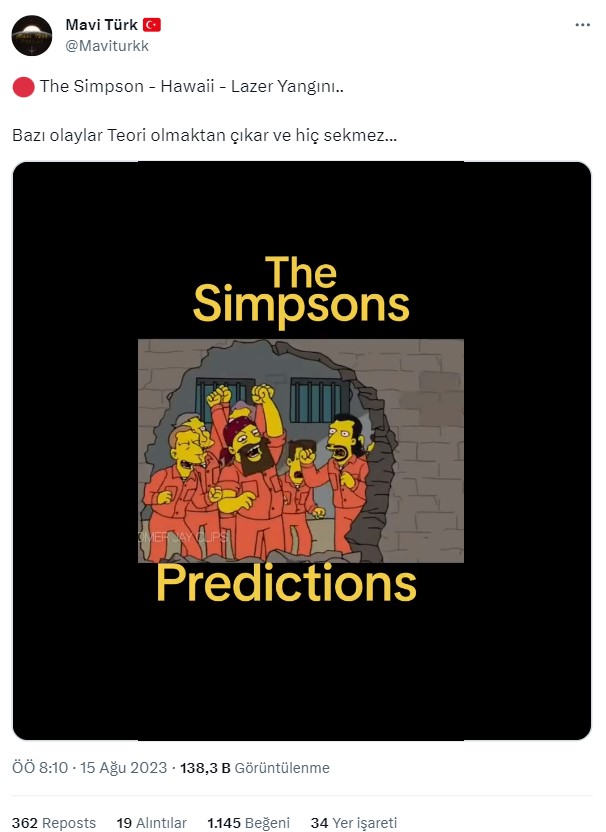 Sosyal medyada yayılan Simpsonlar dizisi sahnelerinin Hawaii’deki orman yangınlarını önceden tahmin ettiği iddia edildi.