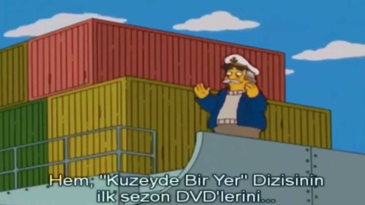 - Gemi kaptanı, Kahramanmaraş’a Kuzeyde Bir Yer isimli bir dizinin ilk sezonunun DVD’lerini götürdüğünü söylüyor.