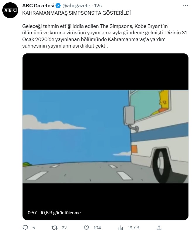 - Simpsonların ilgili bölümünde Kahramanmaraş’ta yaşanan depremi önceden bildiğine herhangi bir detay yer almıyor.