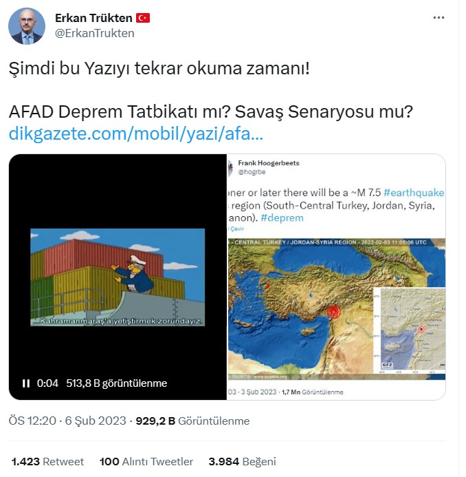 6 Şubat 2023 saat 04 ve 13 sularında gerçekleşen 7,7 ve 7,5 büyüklüğündeki depremler, Güneydoğu’da birçok ilde yıkıma neden oldu. Bölgede arama kurtarma çalışmaları halen sürerken, internette paylaşılan hatalı bilgiler ve komplo teorilerinin yayılımı hız kesmiyor.