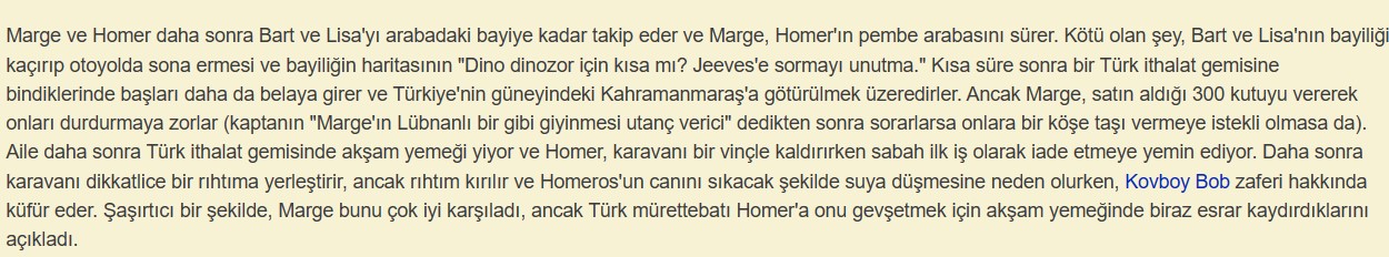 Öncelikle görüntüleri izlediğimizde dizinin karakterlerinnde Bart ve Lisa’nın içinde olduğu karavanın, üzerinde Türk bayrağı bulunan bir yük gemisinin üzerine düştüğünü görüyoruz. Kaptana çocukların gemide kaldığı söylendiğinde “Onları burada göremiyorum. ‘Kuzeyde bir yer’ isimli dizinin ilk sezon DVD’lerini Kahramanmaraş’a götürüyorum.” cevabını veriyor. Konuşmanın devamında da Kahramanmaraş’taki depreme dair bir göndermeye rastlamıyoruz.