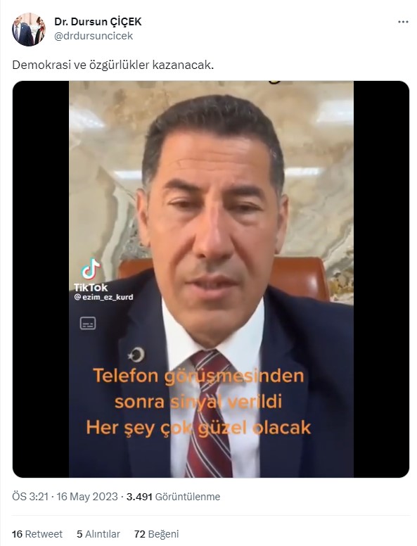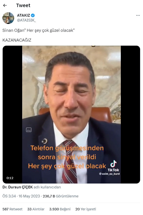 - Sinan Oğan videoda Millet İttifakı’nın kullandığı sloganlardan “Her şey çok güzel olacak” ifadesini kullansa da seçimden önce paylaşılmış.