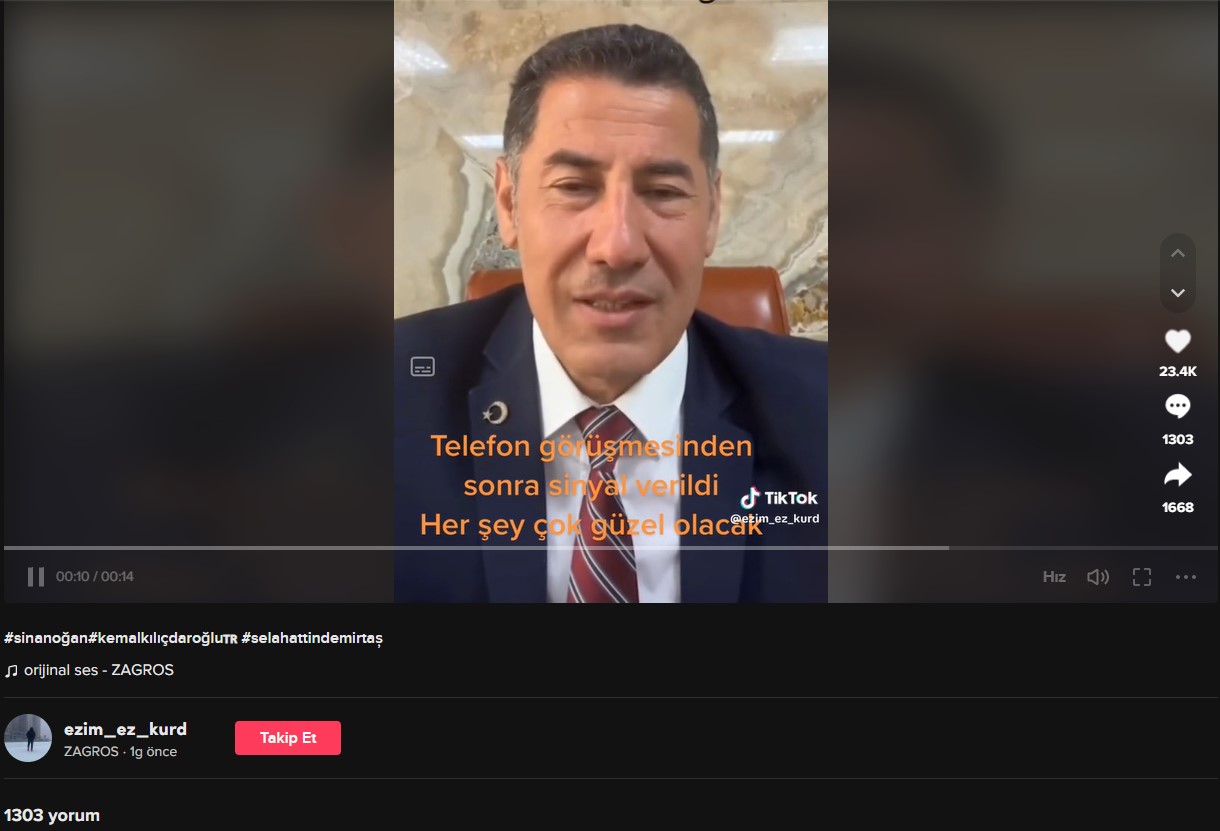 CHP Grup Başkanvekili Engin Özkoç, Kemal Kılıçdaroğlu ile Sinan Oğan’ın telefonda görüştüğünü söylemişti. İddia videosu ile bu görüşme sonrası Oğan’ın Kılıçdaroğlu’na desteğini açıkladığı algısı oluştu.