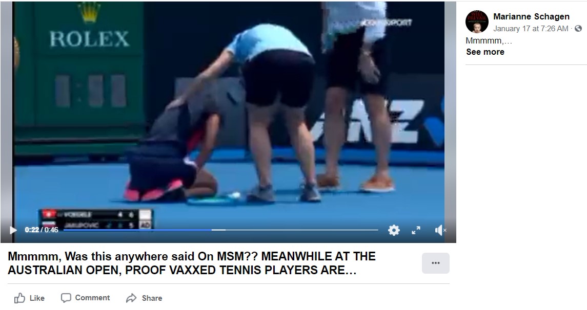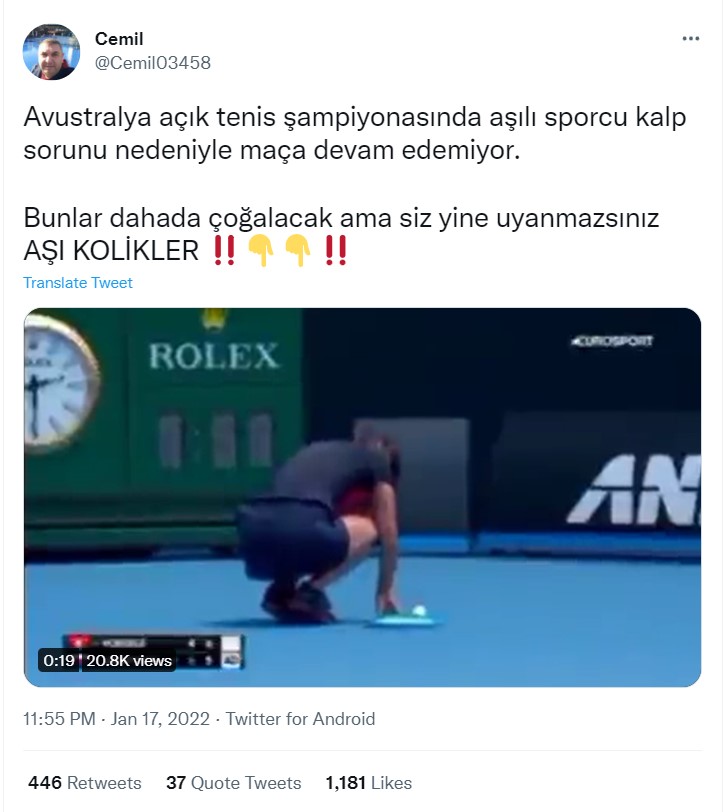 Haberin detayı okunduğunda, videonun pandemiden önce yapılan turnuvada kaydedildiği anlaşılıyor. The Guardian tarafından Youtube’da 14 Ocak 2020’de paylaşılan görüntülerde Dalila Jakupovic‘in maç esnasında solunum güçlüğü çektiği fakat bu problemin Covid-19 aşısıyla bir bağlantısı olmadığı belirtilmiş.