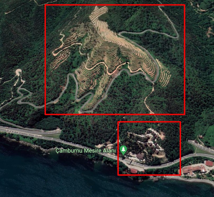 Yangın bölgesinde herhangi bir inşaat yapısının olup olmadığına dair detaylı inceleme yapabilmek adına, Google Earth üzerinden bölge görüntülerine baktık. 2017 tarihinde Trabzon Sürmene Çamburnu Tabiat Parkı’nda gerçekleşen yangın alanına bakıldığında en güncel uydu görüntülerinin 10 Haziran 2018’de eklendiği görülüyor.