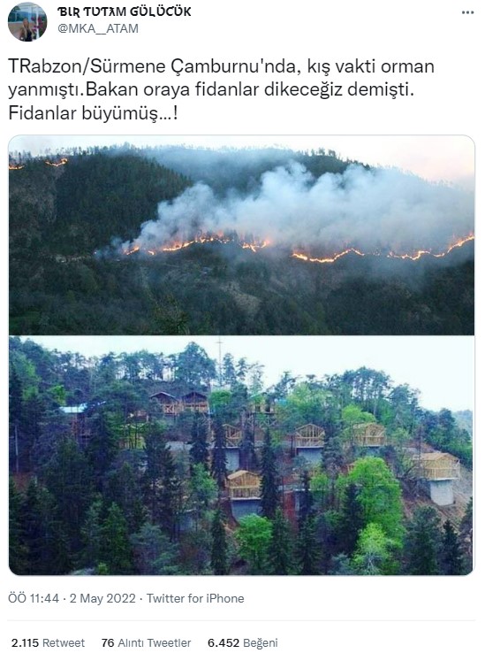 - Trabzon Çamburnu’nda orman yangını 7 Ocak 2017’de çıkmıştı, yangın sonrasında tahrip olan bölgede herhangi bir yapılaşma olmadı.