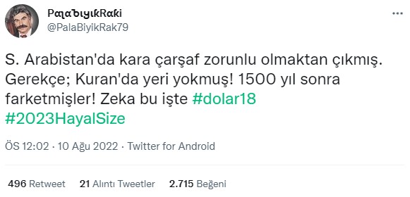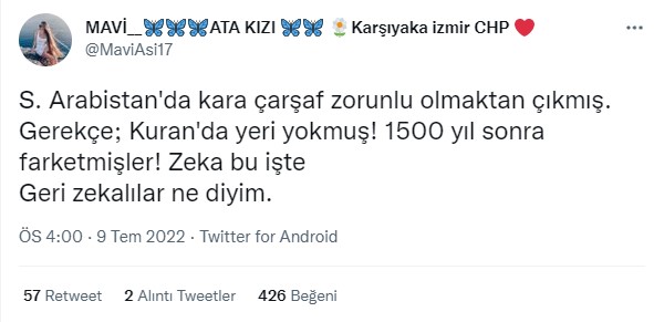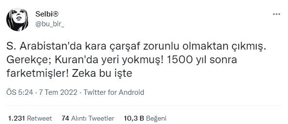 Sosyal medya paylaşımlarındaki ifadelerde , Suudi Arabistan’da kadınların kara çarşaf giyme zorunluluğunun kaldırıldığı söylenmişti. Bu duruma gerekçe olarak Kur’an’da yeri olmadığı öne sürülmüştü.