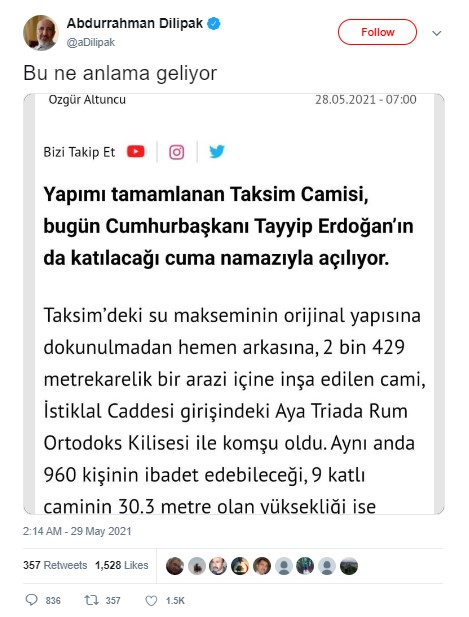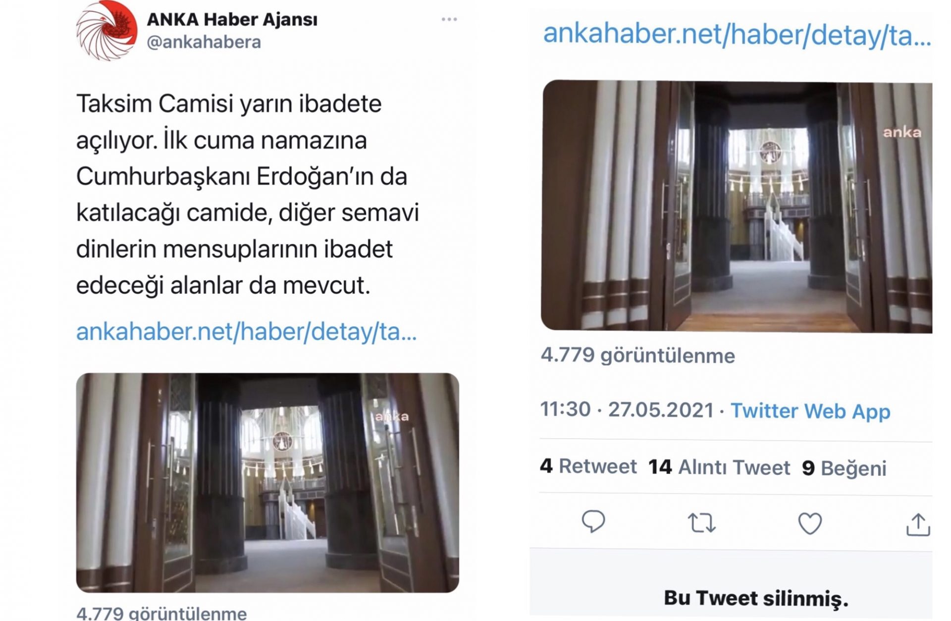 29.05.2021 cumartesi günü törenle açılan Taksim Cami’nin içinde Hristiyan ve Musevilere ait ibadet alanlarının yer aldığına dair haber sosyal medyada gündem olurken kullanıcılar arasında tartışmalara sebep oldu. İddiayı ilk olarak ANKA Haber Ajansı gündeme getirdi. Ardından, cami açılışı haberini paylaşan Hürriyet.com da haberinde bu iddiaya yer verdi. Sosyal medya kullanıcılarının iddiayı yalanlaması üzerine, iki mecra da haberi yayından kaldırdı. Hürriyet.com düzeltme yayınladı.