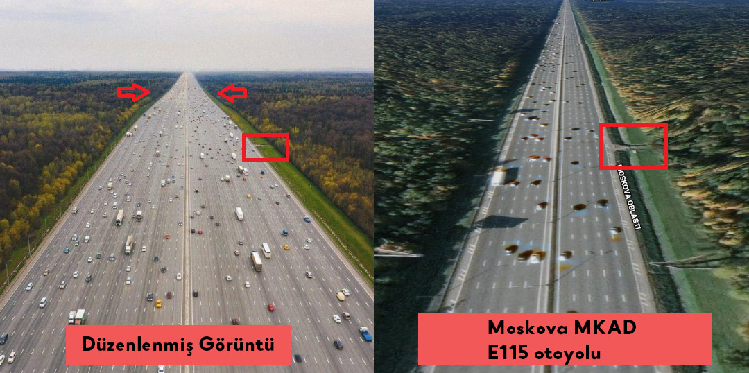 Dijital ortamda klonlama aracıyla bunun gibi manipüle edilmiş görsellere sıklıkla rastlıyoruz. Daha önce de Çin’de trafik sıkışıklığını gösterdiği iddia edilen sözde büyük bir otobanı incelemiştik.