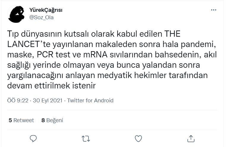 İlk sayısını 1823’te çıkaran the Lancet dergisi en eski tıp dergilerinden biridir. 2017 yılında The New England Journal of Medicine’dan sonra en çok atıf yapılan tıp dergisi olmuştur. Başka bir deyişle, dergi tıp dünyasında önemli bir yere sahiptir. Dergide ilgili yazı 17 Eylül 2021’de yayınlanmış bir yazıdır. Yazı bir araştırmaya dayanmamaktadır. Sadece yazarların görüşüne yer vermektedir.