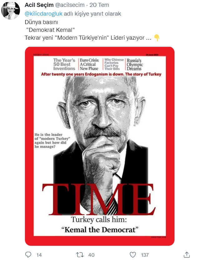 Time Dergisinin kapağında Kemal Kılıçdaroğlu’nun yer aldığı iddiası