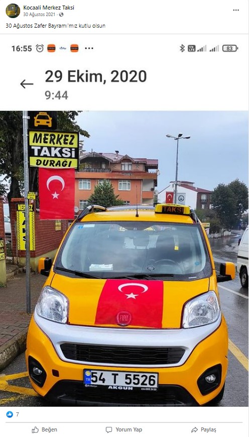 Taksinin plakasını arattığımızda Kocaali Merkez Taksi’nin Facebook hesabına ulaştık. Burada, aynı plakaya sahip aracın fotoğrafları görülüyor.